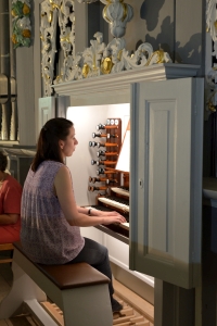 Der Höhepunkt am Nachmittag war ein Orgelkonzert, gespielt von Leo van Doeselaar, einem international bekannten Orgelsolist und zugleich Professor für Künstlerisches Orgelspiel an der Universität der Künste in Berlin. Er begann mit Johann Sebastian Bachs „Passacaglia und Fuge c-moll BWV 582“, gespielt nach den originalen Registrierungs- und Tempoanweisungen von Johann Gottlob Töpfer (1791-1870), dem Theoretiker des hochromantischen Orgelbaus, mit dem Julius Strobel zusammenarbeitete.